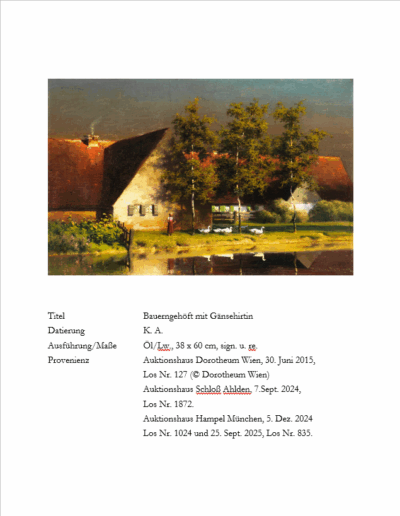 In folgendem Abschnitt subsummieren wir diejenigen Gemälde von Paul Wilhelm Keller-Reutlingen, die ein größeres Bauerngehöft mit einer Gänsehirtin und ihrer Gänseschar abbilden.